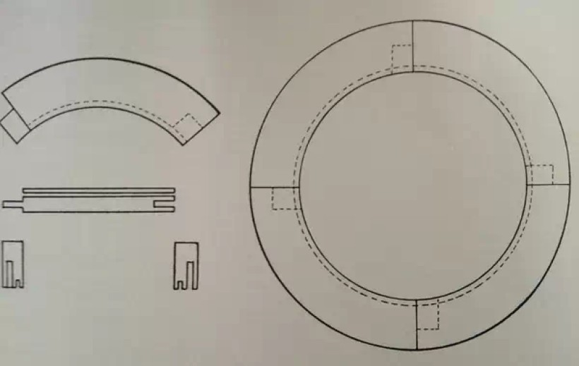弧形弯材接合:楔钉榫之二