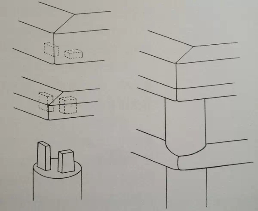 圆材闷榫角接合(出榫一单一双)