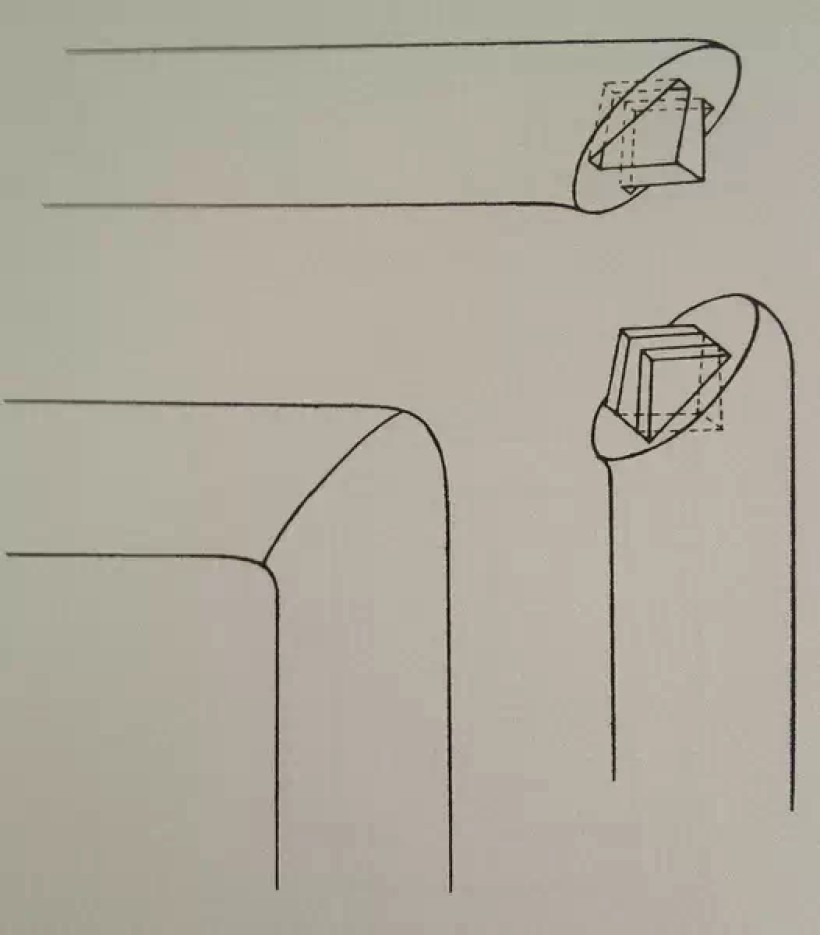 圆材闷榫角接合(挖烟袋锅)