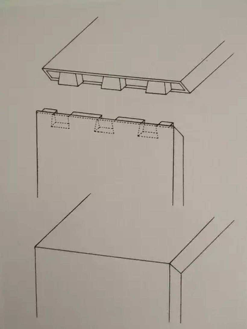 插肩榫变体(牙条里面开槽挂销)