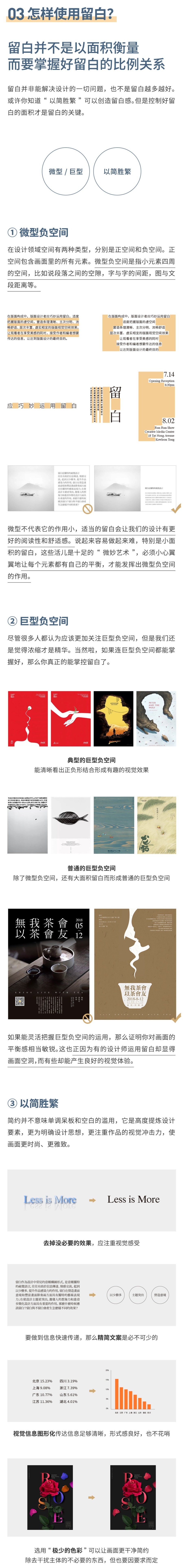 在设计中,“留白”这词经常听到,但却搞不懂它是什么意思,也不知道怎样使用,总觉得留白就是一种艺术。留白用得好就是一门艺术,用不好就是给人呆板和空洞。留白作为设计中常见的一种构图形式,起到以少胜多、提升作品感染力的作用。在这里,我会以个人的经验总结留白的知识点,希望能带给你一点启发。如有说得不对的地方请指点