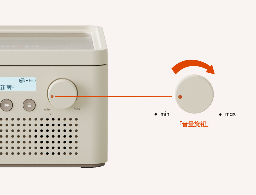 第二处桔色跳色,是音量旋钮上的小标记。这个点的存在,是为了让音量大小一目了然,可以在视觉上同步感知到音量的变化。