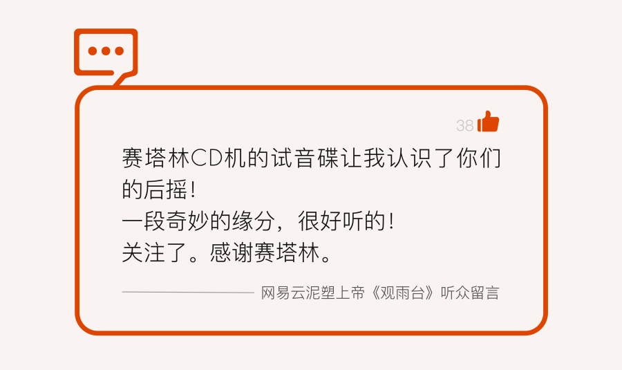 在R200发售后不久,我们陆续看到不少听众在音乐平台上给泥塑上帝留言,说是“很开心通过赛塔林R200认识了你们”。