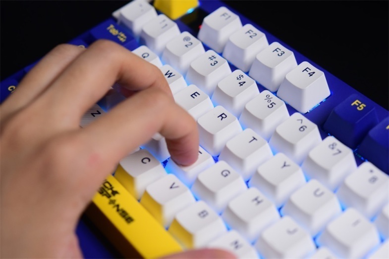 搭上这亮黄的键帽,整个键帽马上精神多了,没想到买个键盘还得自己动手换原装键帽啊。
