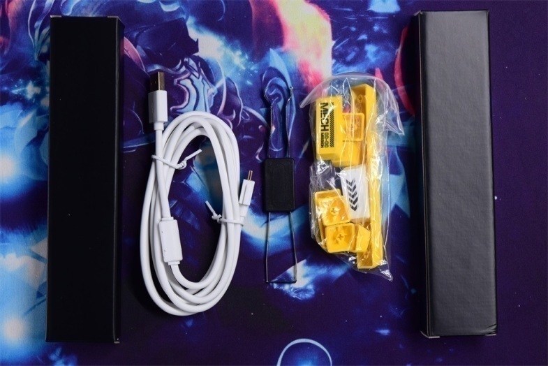 至于这两盒小配件就是钢鞭型Type-C连接线,还有就是机甲版本体的增补键帽和拔轴器。