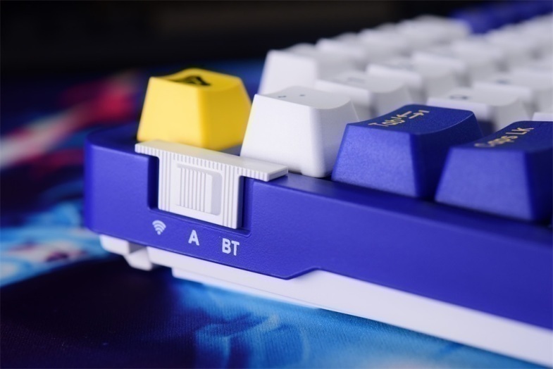 换完键帽我们再来看看这把达尔优A98的细节,这个换挡的推拨按键可以说完全提升了,之前那几款三模的A系列机械键盘那个档位按键太小颗,而且在顶部很难操作。这次可以说是认真聆听了玩家的心声,改了一个舒服的出来。