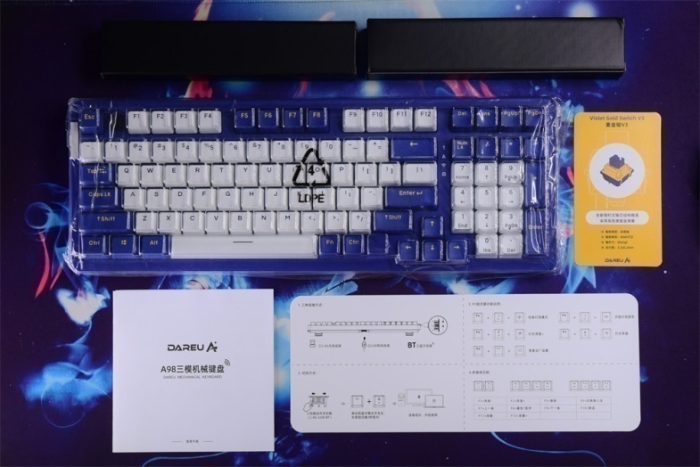 没错,就是他,达尔优A98三模机械键盘。包装很酷炫,可以说很高达风格外观设计了。