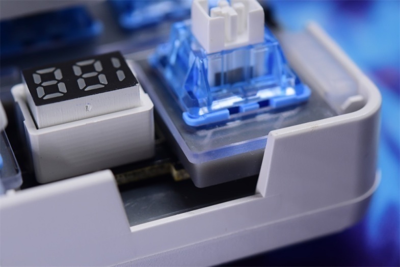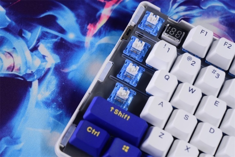 灯光方面依然是上了RGB,但对于这不透光的键帽来说还是聊胜于无,厂家的想法大概是,反正都做了,给你做倒顶自己去DIY吧,不然到时候又说没RGB。然后就是这个电量显示屏,其实真的没必要,要么换个像素屏吧,现在这个实在不搭。