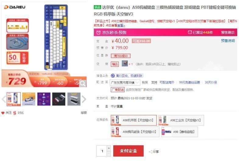 去他们店铺看了一下,虽然价格很高,但除了静电容预订的是双位数,其他三个版本预定量都是四五百这样子。明明看到一堆人在他们官博说这键盘贵,但又有那么多人买,那这把真·Gasket结构的达尔优A98机械键盘到底是贵还是划算呢?