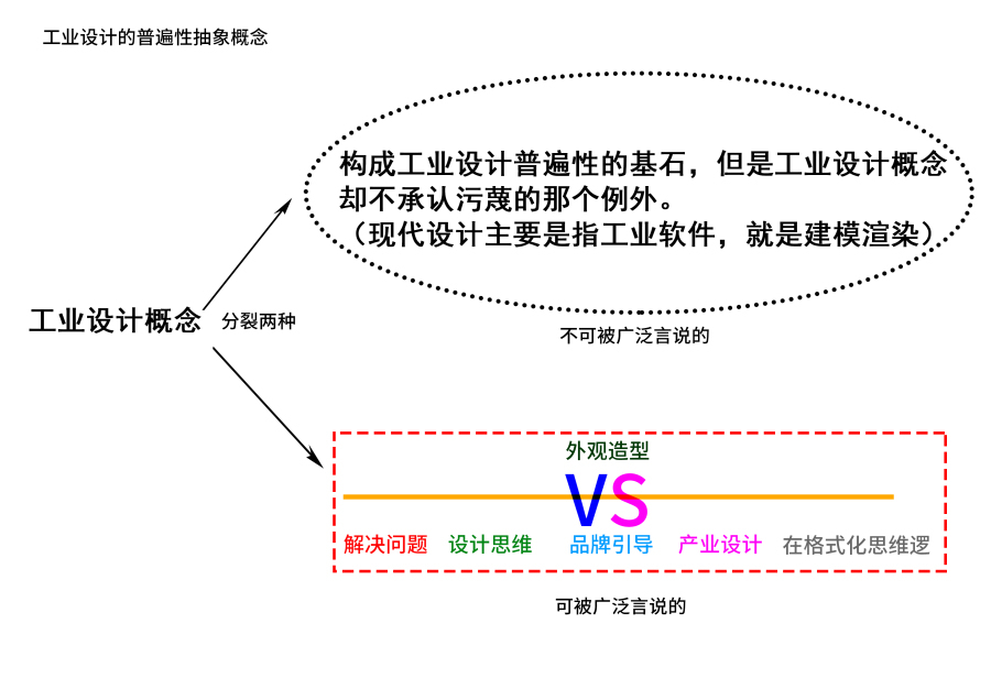 我们要从工业设计中“解决问题”和“做外观的”区别争夺次序中解脱出来,以这个当下最普遍化却不被承认例外中寻找这个例外中蕴含未来的新的对立区别,并为它创造新的概念系统和可道说出来的言语,他可能是生活世界的衣食住行同系统世界的对立。也可能是工业设计是结构化,功能化和品牌服务设计之间的区别和对立。但是这种对立和区别,肯定比现在甲方和行业外的说工业设计是做外观的或者画图的,要温和更多。