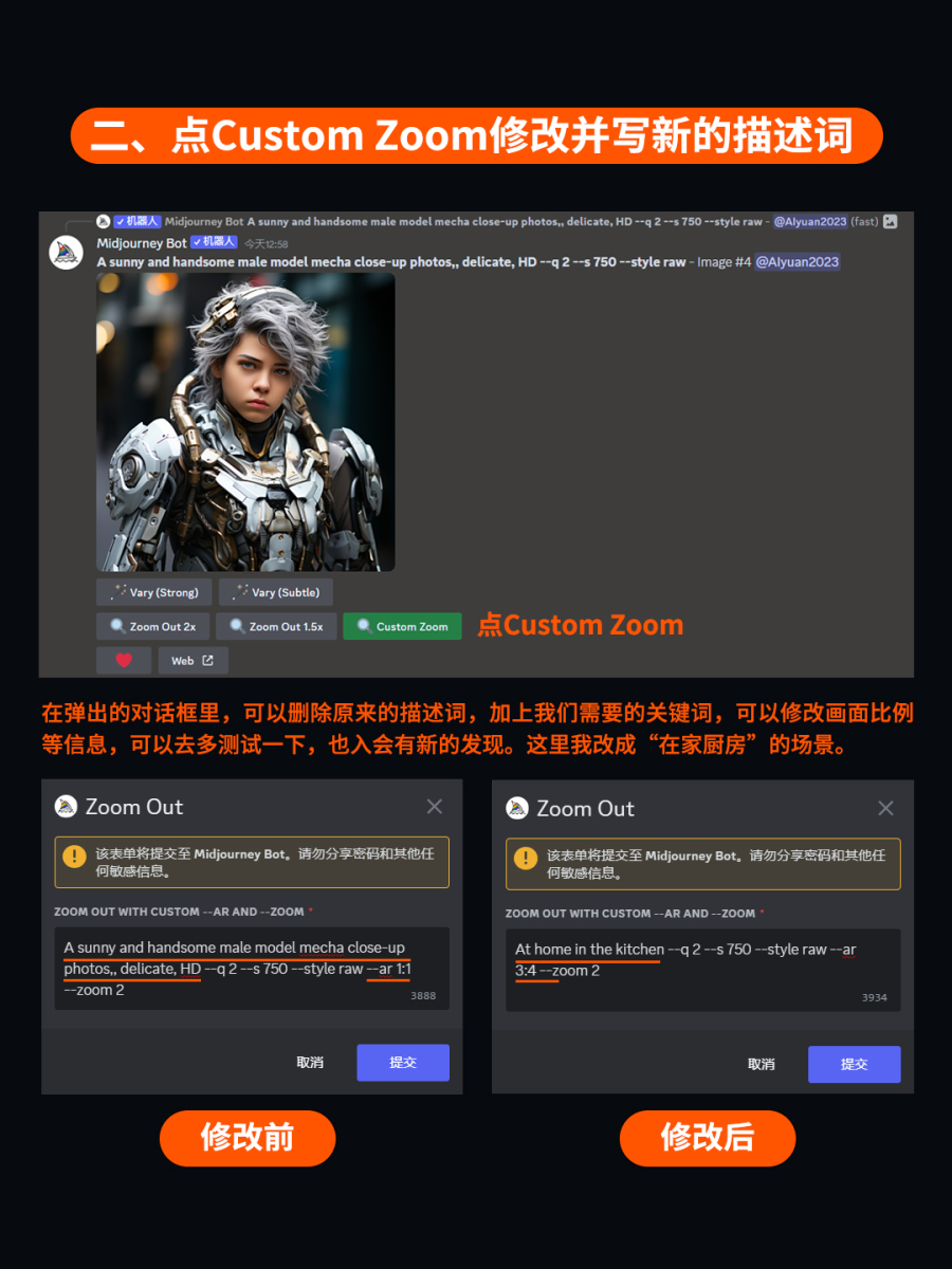 二、选一张比较满意的图片进行U,再点Custom Zoom修改并写新的描述词