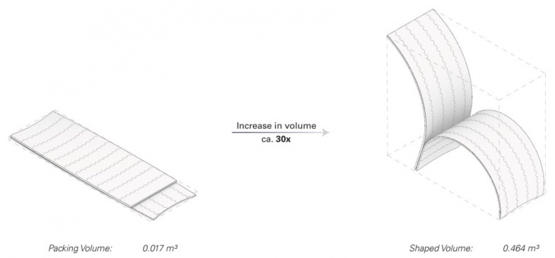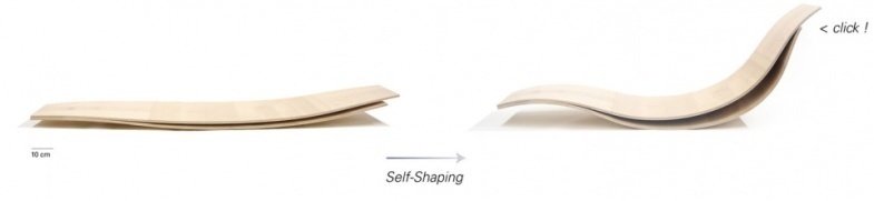 HygroShape是世界首个真正实现自塑形概念的仿生家具。设计利用木材的天然固有特性,并采用特殊技术使家具构件以平面的形式生产并包装,在打开包装时,家具构件会自动展开成型。家具自塑成型的原理来源于木材吸湿收缩的自然现象。这一过程在无声无息中悄然发生,无需人的参与,亦无需使用任何工具或安装说明,它就这样在眨眼之间平稳地展开。