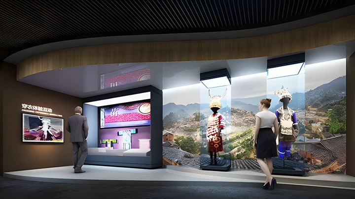 3、展厅外观设计就像整个展厅的骨架,要结合展品的特点和企业的整体形象来设计。因此在非遗文化展厅设计中大多都会采用复古的感觉,让用户能够全身心地沉浸其中,同时其中的数字多媒体互动也能够为用户提供全新的数字内容,展现丰富的非遗文化。