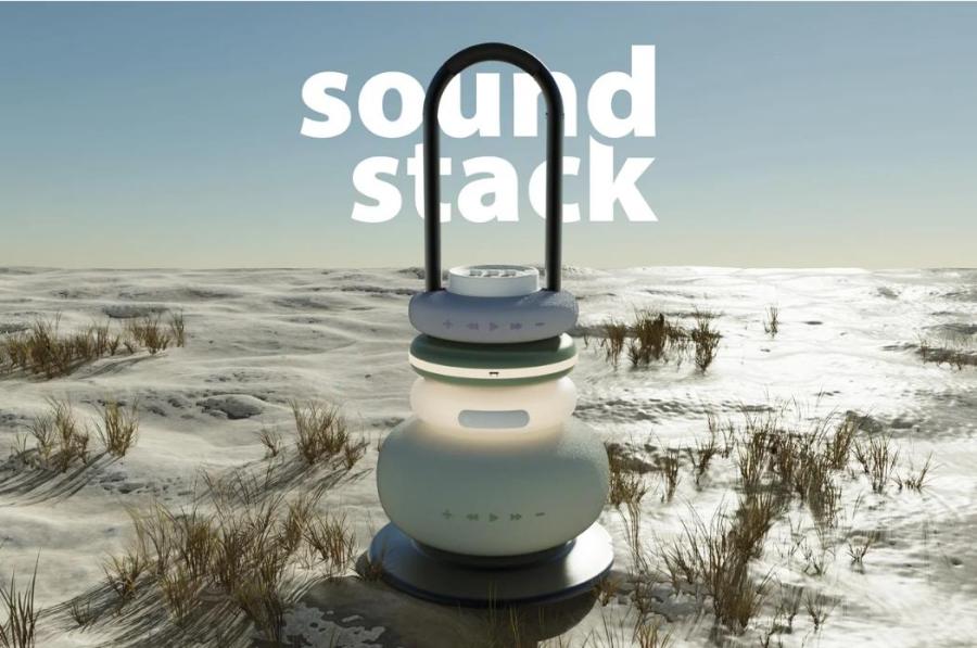 这款扬声器的外形类似于卵石堆积物,强烈的360度空间感声音来自于其创新的圆形设计和两个不同大小的扬声器。Sound Stack不仅仅是一个扬声器,它还是一款多功能的伴侣,旨在为您的旅途和居家生活锦上添花。