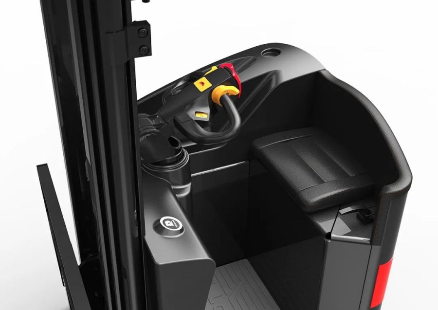 实用性:首先用真皮坐垫取代了繁琐厚重的座椅,增大了驾驶员的操作空间。加高护顶架,提升了座驾空间。置物区的设计,使大小不同类别的物品可分类存放,弧形的存放区域方便了东西拿取的同时也不易积累尘土。半包围的空间形式,既方便了驾驶员上下车,也进一步增大了腿部活动范围。带有弧度的护顶架,增加产品外形流动性的同时也加强了保护性。最后,产品还进行了结构的重新布局,减少了不必要的空间浪费,打造出一款空间最宽敞、合理的电动叉车。