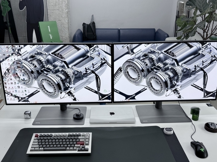 在团队显示器的采购上,我们希望能满足即能让同伴看的色彩相对一致,也会希望能做到与最终的成品打烊一致,基于此,我们选择了全链路色准标准的明基专业色准显示器。
