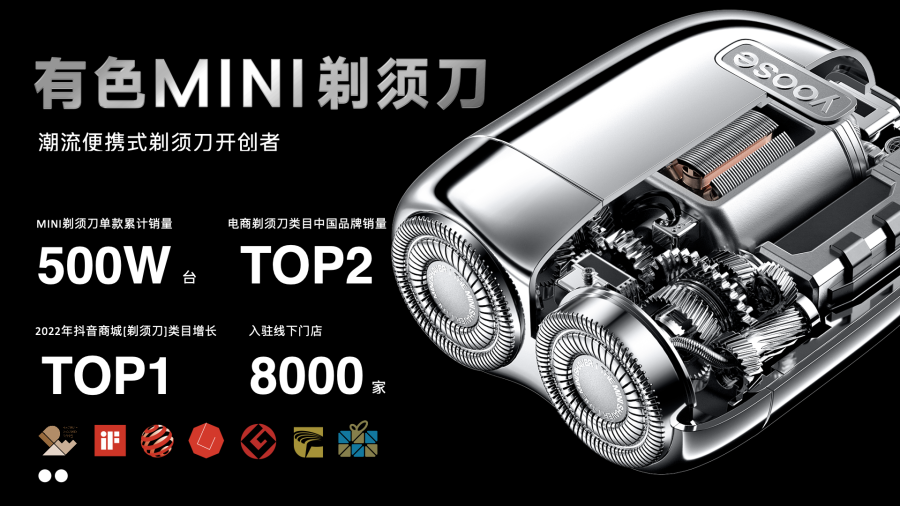 为了验证设计的价值,佳简几何于2019年孵化个护品牌有色yoose。作为中国MINI剃须刀开创者,剃须刀作为文化载体,有色以出色的设计及深度的IP联名,成为当下最受年轻人喜欢的剃须刀品牌,目前已经销售超过500万台。