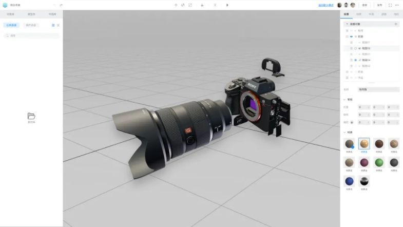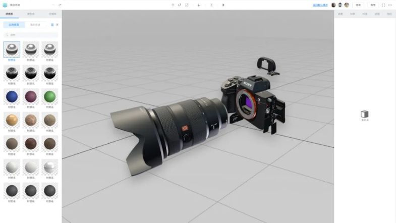 优化后的操作界面更加简洁,更符合设计师们的使用逻辑。左侧为材质库、模型库、环境库,中间为模型展示区,右边则是用于调节参数的编辑区。