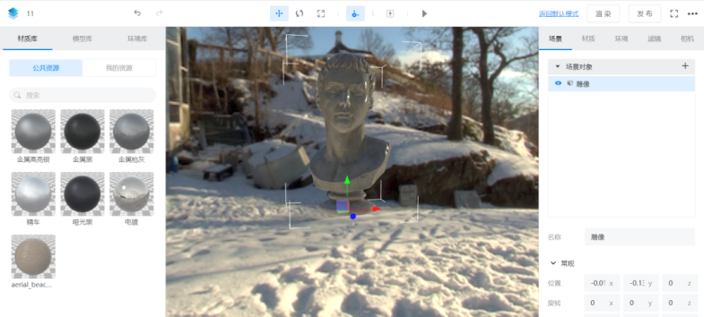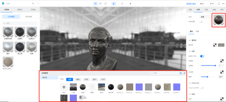 新编辑器自带不少实用的材质和环境库,这些素材全部自带预设参数,稍加调整便能得到很好的渲染效果。