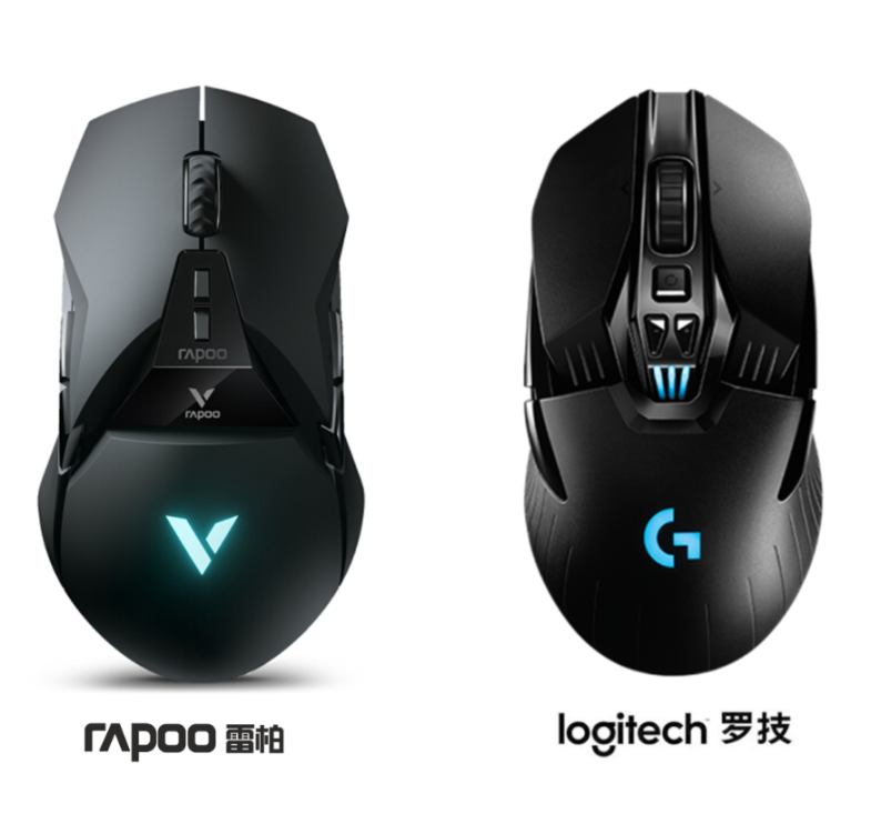 (图1,罗技和雷柏产品的设计模式)