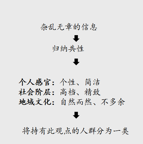 用户群人口统计:共同地域,性别,年龄,收入,教育。因此将用户归为一类,这里的用户的三观价值基本一致,是积极的,高尚的,先进的拥有共同大取向。例如欧洲人的刀具与日本人的刀具。