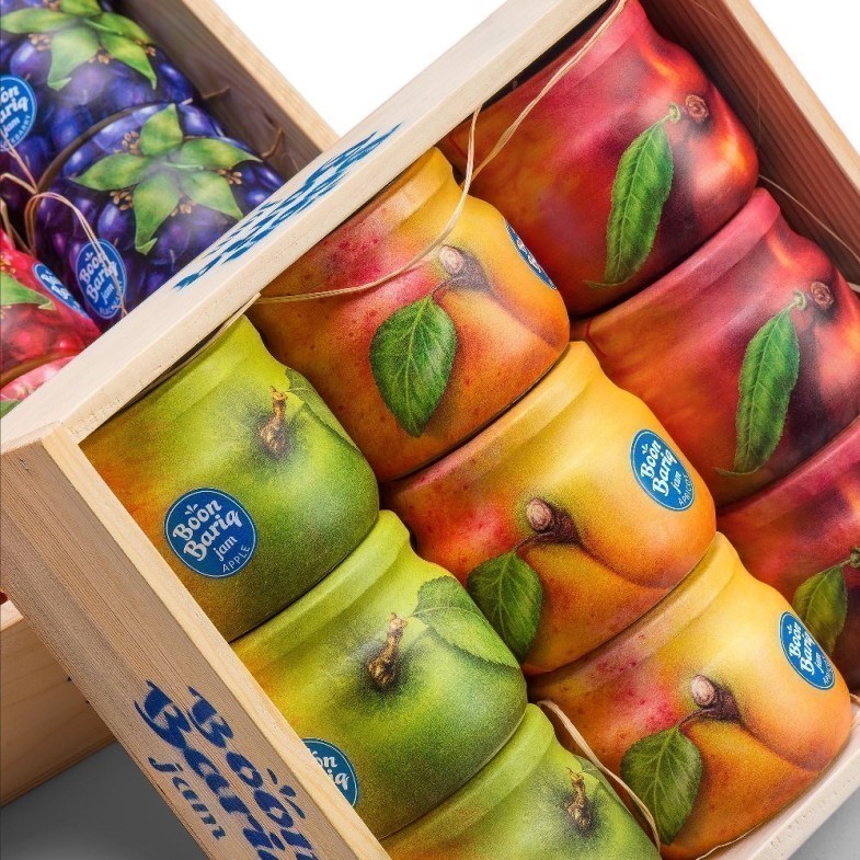 设计机构通过研究大量的水果和标签设计,发现很多品牌的果酱在标签上有四分之一甚至一半的版面都是在展示品牌信息。为了与同类型产品区别开,设计师们想到了一个简单直接的解决方法:把整个罐子用果皮包起来。消费者在超市挑选水果时,很容易被那些成熟的或很好看的水果吸引。而这,就是最好的包装设计。