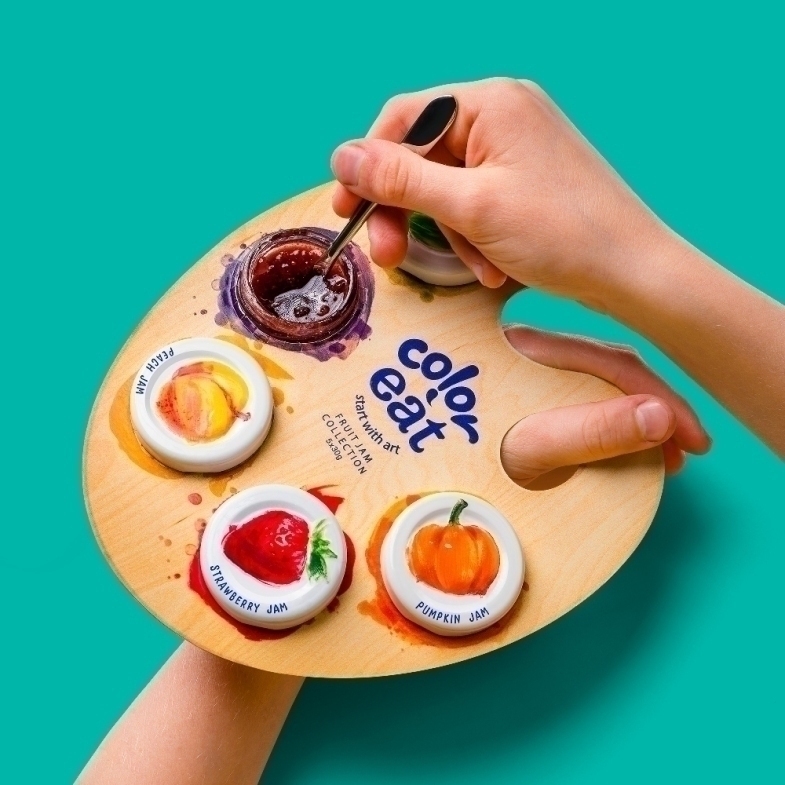 Coloreat是一款面向儿童的果酱产品。在国外,果酱是传统早餐的重要组成部分,这款包装设计瞄准了儿童在早餐时食用果酱的场景。