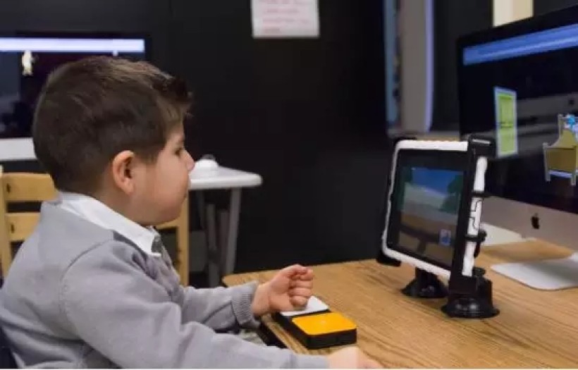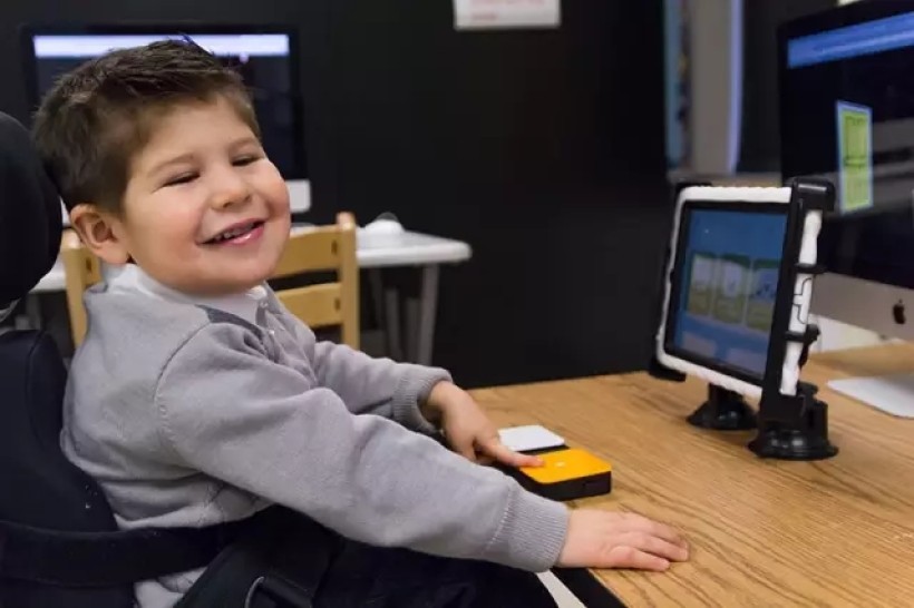 图:一脑瘫儿童在使用Blue2 Switch布鲁兔