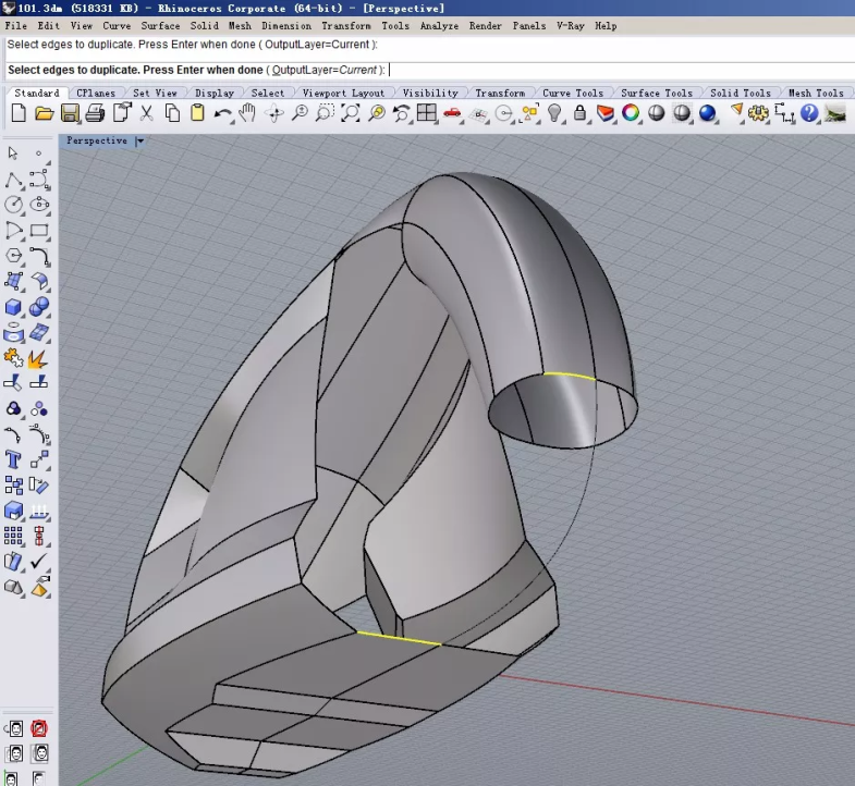 这里我没有直接拉伸和放样,而是需要调整四边轮廓线来得到比较优质的曲面。