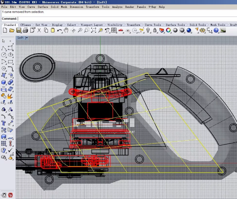 由于我们绘制的时候就是在渲染图的基础上进行的,所以二维图导进Rhino的时候,比例位置调好之后,轮廓自然比较准确。