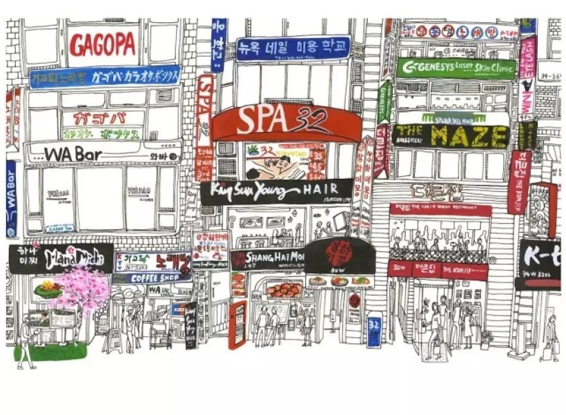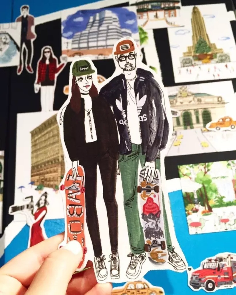 把她们提到的餐厅、公园,建筑等等都画了下来