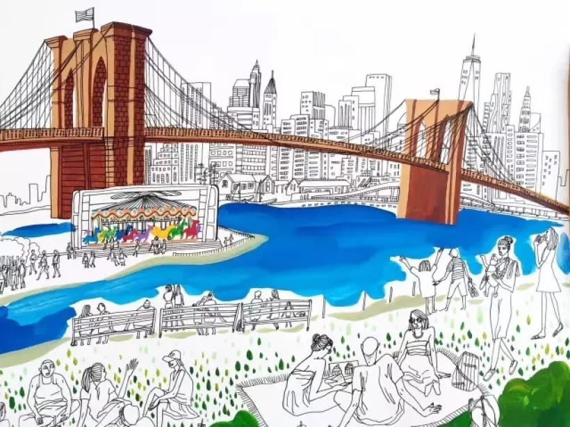 你可以在手绘纽约地图上找到所有的餐厅、公园的位置