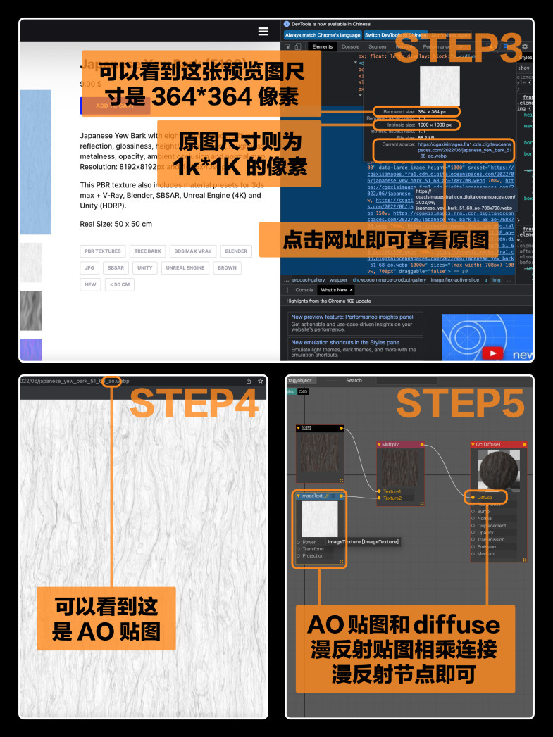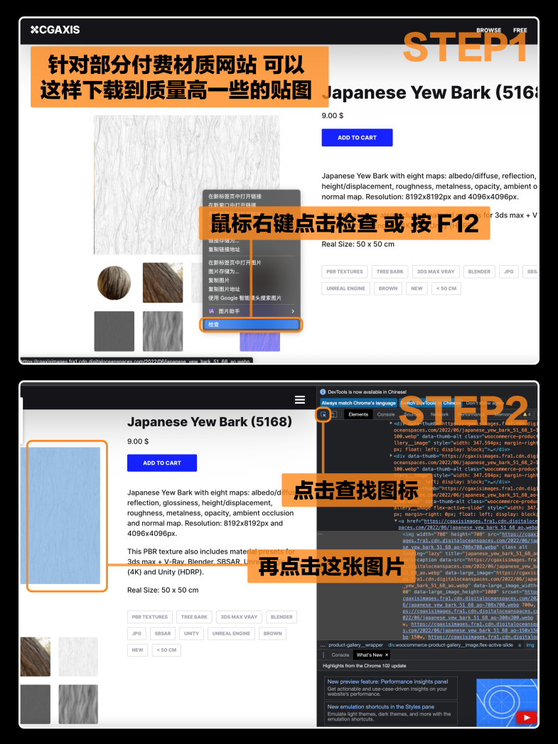 🟠 p2 p3 针对某些付费材质贴图网站,通过检查网页源代码的方式可以获得比预览图更高的图片像素/质量。