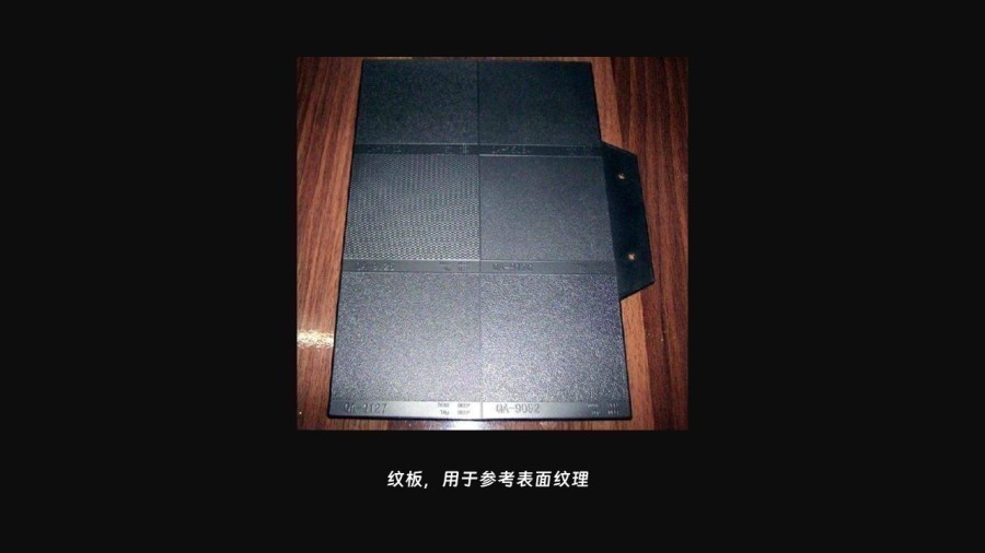 纹板,主要是用来选择产品表面纹理,纹理越粗糙 所需要的拔模角越大。