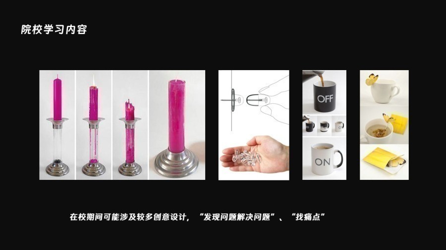 院校中的课程大多以做创意、找痛点、解决问题为主,去做各种设计比赛。