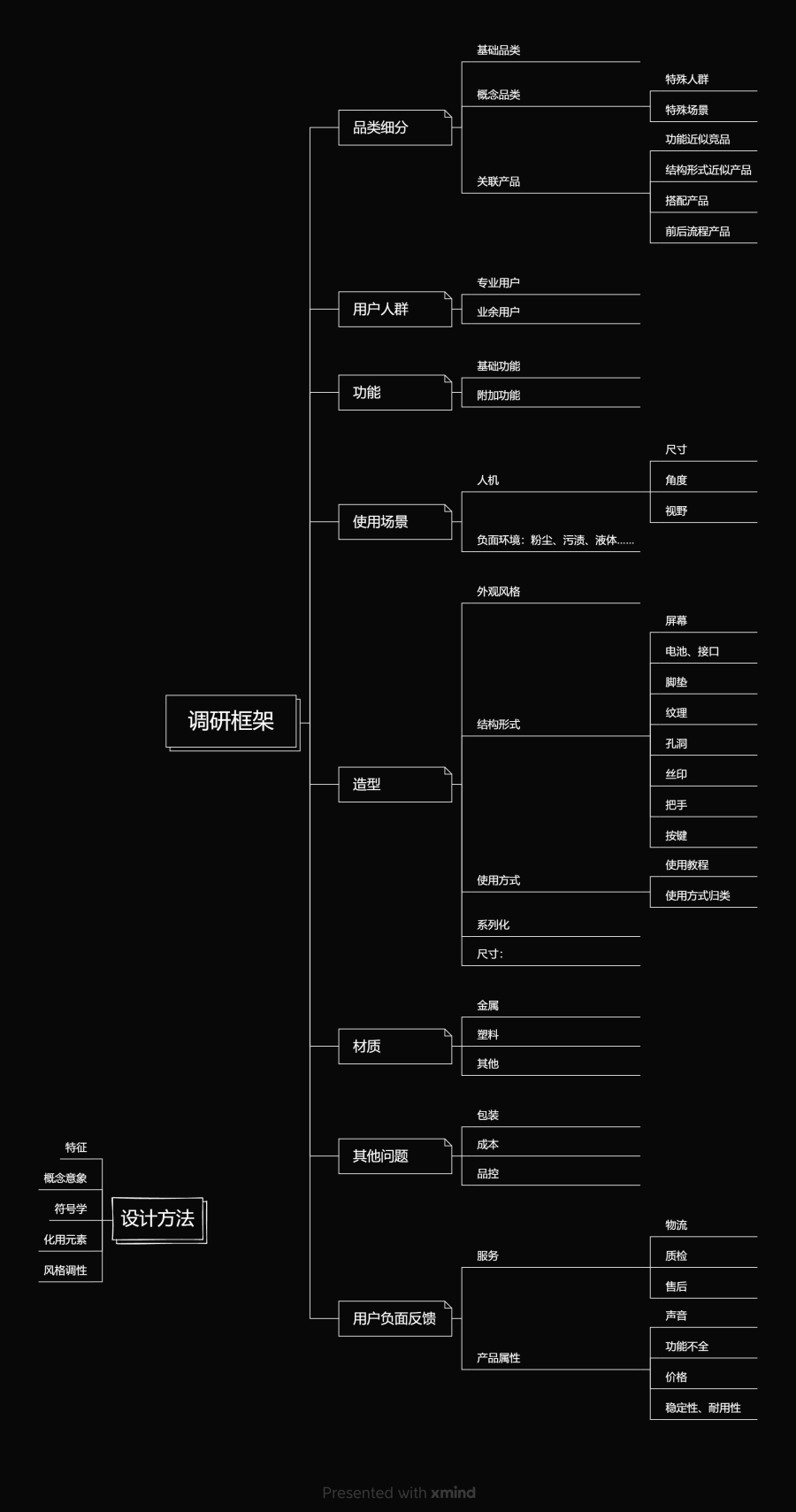 由于我之前的公司较为喜欢研发新产品,我是非常看重调研的,也常常能从中发现很多切入点,上面是我之前视频教程里做过的一个框架。