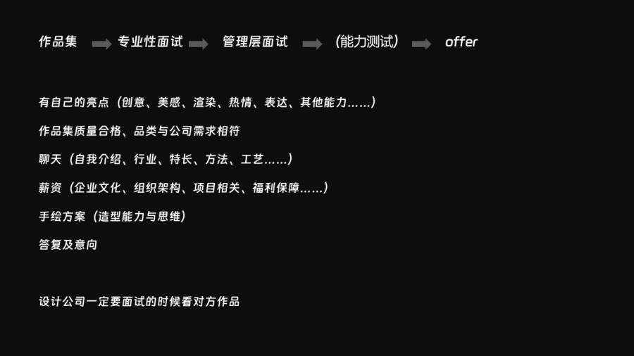 首先感谢大佬的分享!点赞!如果应届毕业生再没找到合适的企业之前,设计公司其实算是个挺好的过渡,工作的强度可以让你的基础能力在短时间内得到提升(建模、手绘能力等),但是从我个人的发展经历上来看,我觉得在设计公司待个半年一年其实就差不多了,很多小的设计公司接触不到产品设计的后期,其实挺磨灭热情的