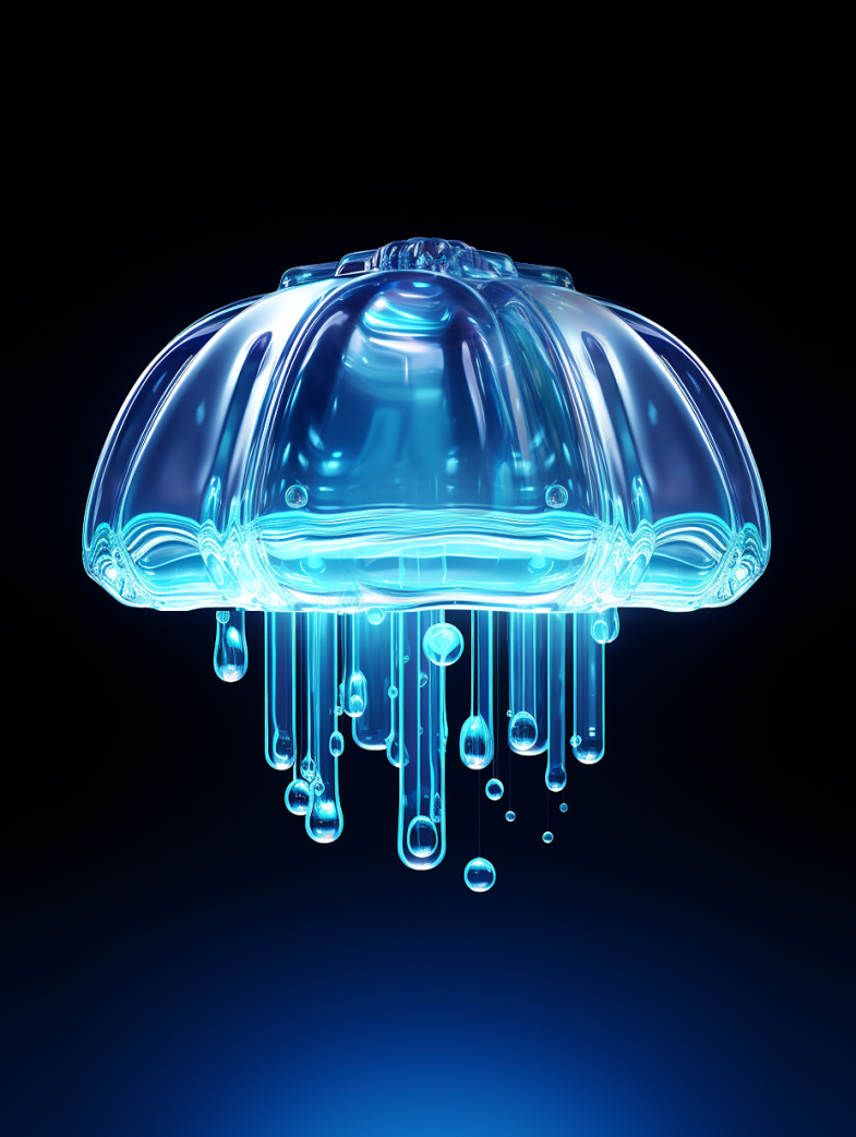 rain icon, holographic blue and white, frosted glass, transparent technology, industrial design, isometric white background, studio lighting, 4K --ar 3:4 --q 2 --s 250
