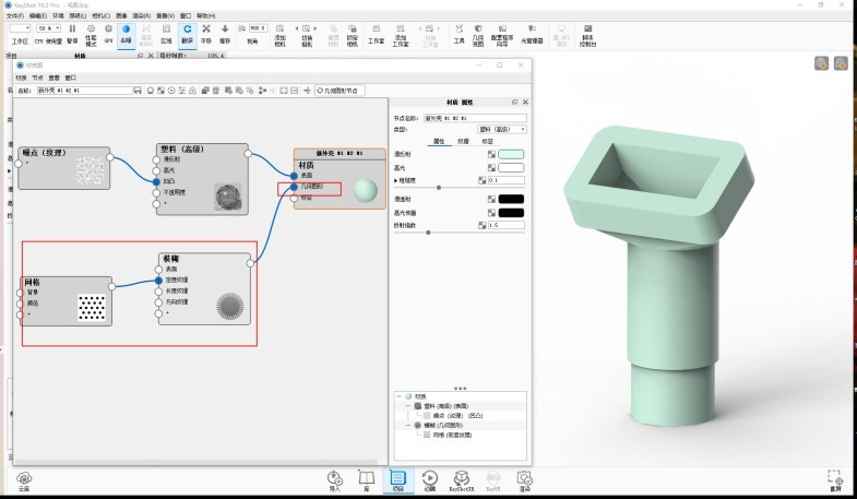 第九步 断开链接在基础材质上的【模糊】再鼠标选中【网格】,键盘C键,刷新显示网格,调整参数;