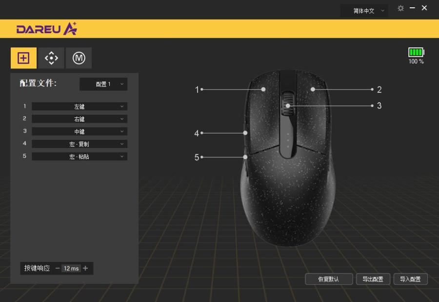 驱动可以显示鼠标的电量和基本的一些鼠标设置和宏录制功能等等。充电方面的话,2.4G状态下用了大概4个小时,还是显示百分之一百电量,感觉没怎么耗电。最高DPI是19000,其实基本上现在的鼠标芯片性能都是溢出的,省电稳定即可。