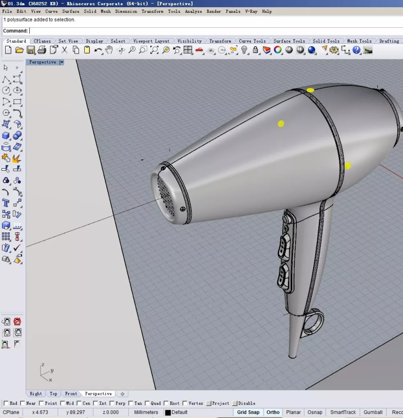 那我们所要做的复古风格设计方案,其实是在模拟它的工艺限制。那我们打开之前的电吹风模型,另存一个文件。