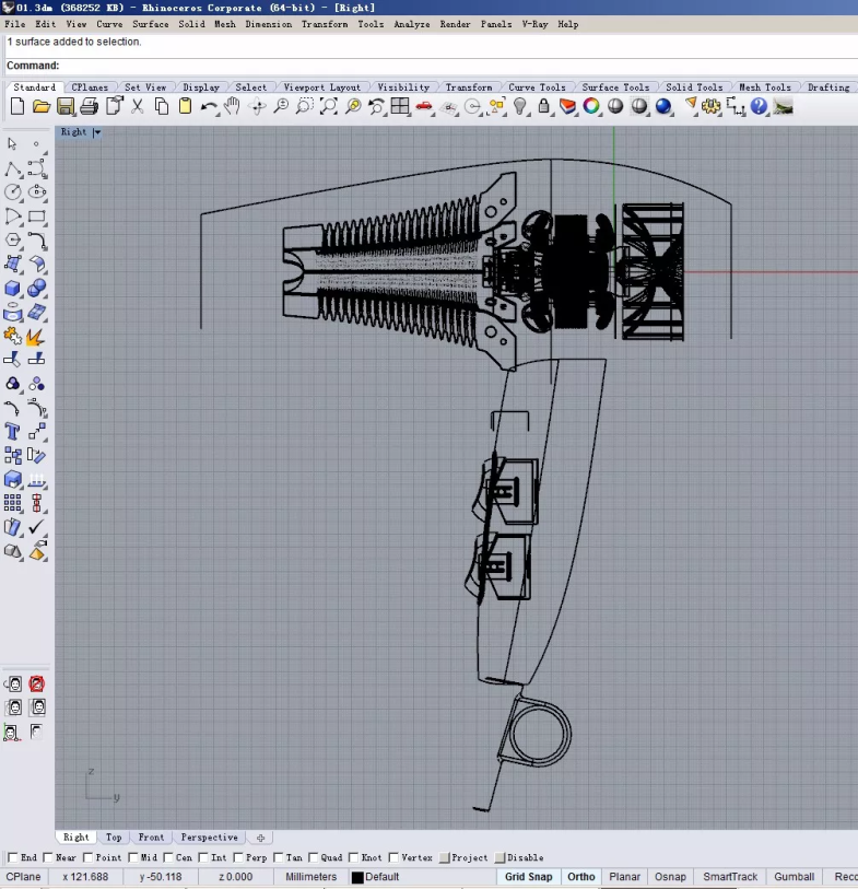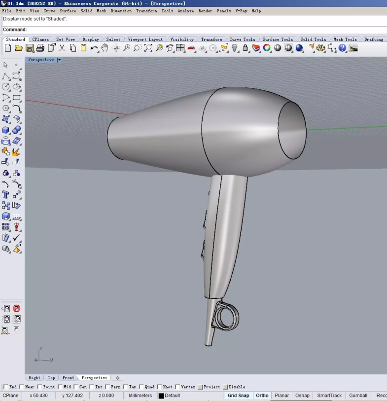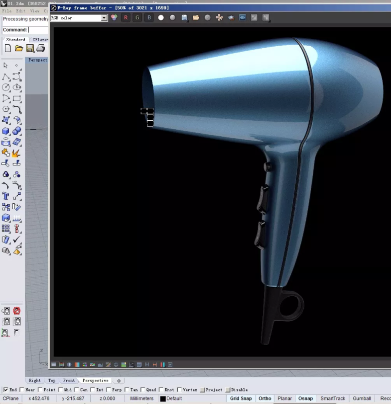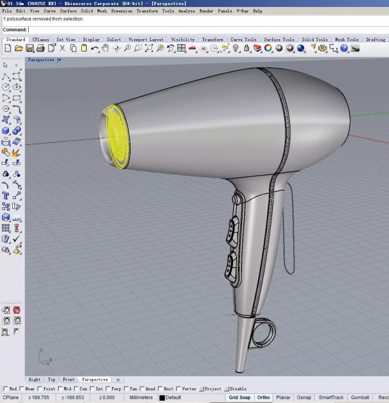 效果不错。接下去我们利用同样的方法,给电吹风做上前出风口盖子。