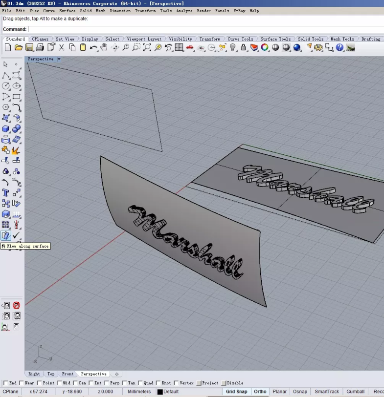 再用沿曲面流动这个命令,把logo流动上去,变成紧贴外壳的实体文字。