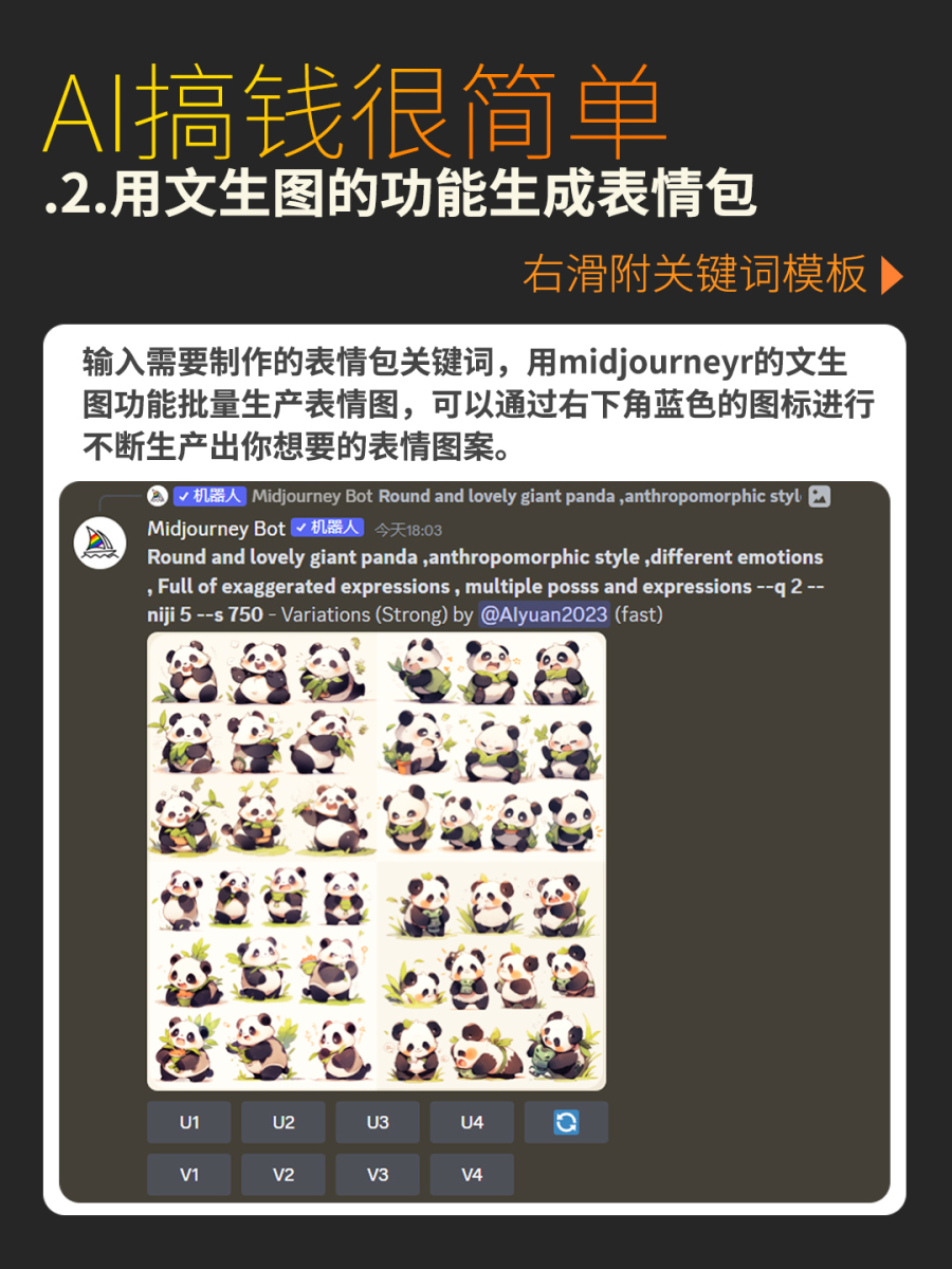 用midjourneyr的文生图功能批量生产表情图,可以通过右下角蓝色图标进行不断生产出。