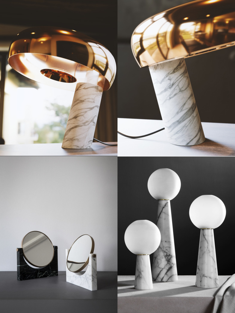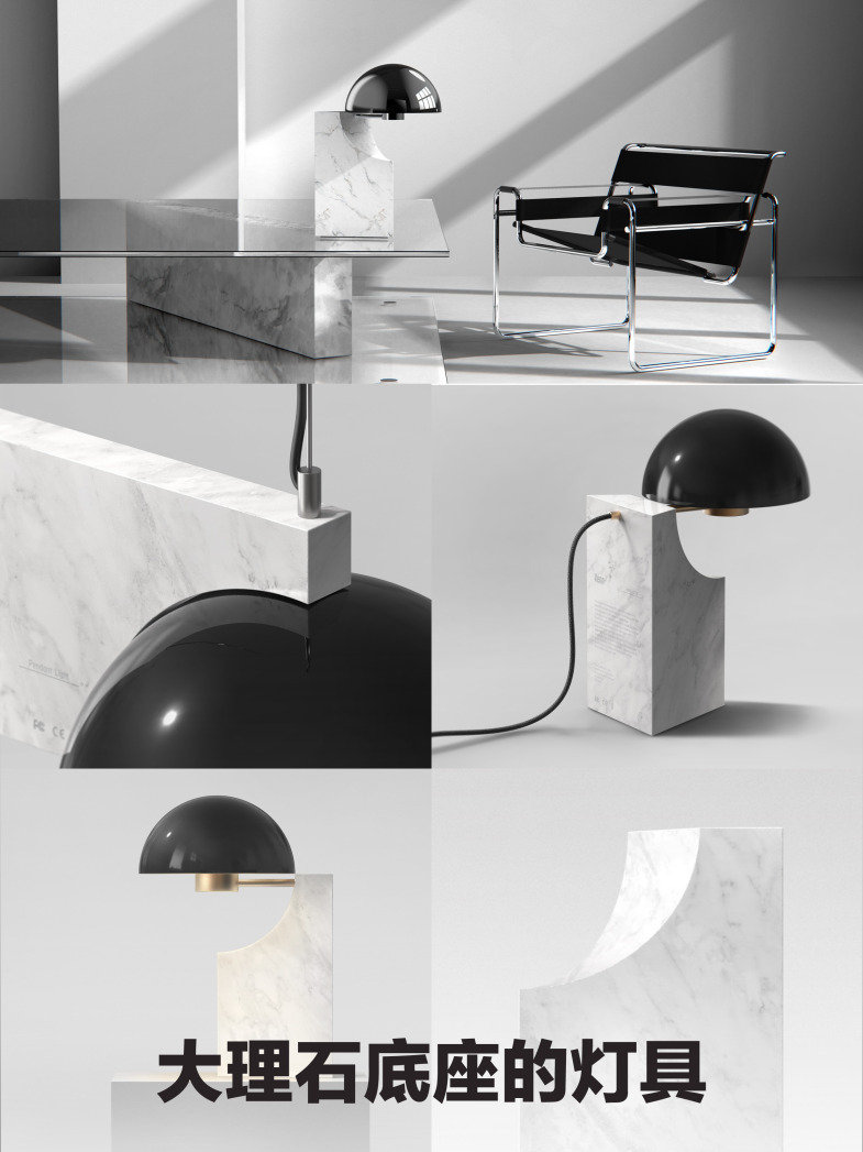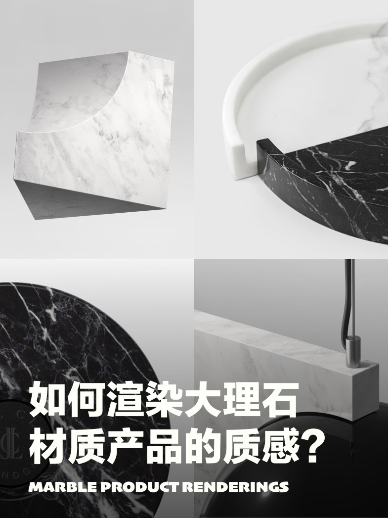 大理石广泛应用于家具,产品底座,器皿。这期借着讲大理石材质聊一下UV贴图,相比于木质产品,大理石纹理贴图需要考虑两个面衔接的处理。(纹理需要通过UV来贴比较自然)