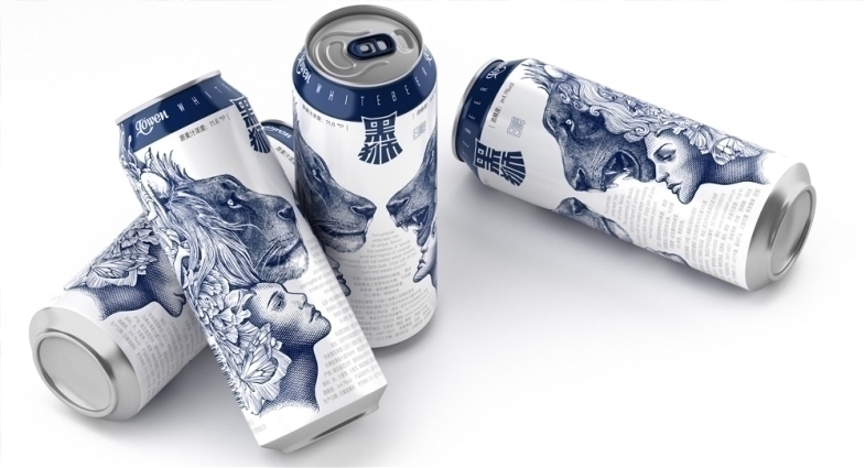 蓝/白的极简配色,也中和了素描与铜版画插画的复杂饱满纹理,同时使这款酒看起来更加精致,与市面上其他听装啤酒区别开来。