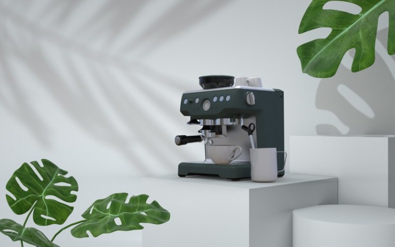 金属桌椅及咖啡机表面为TAC材质球渲染颜色及效果,