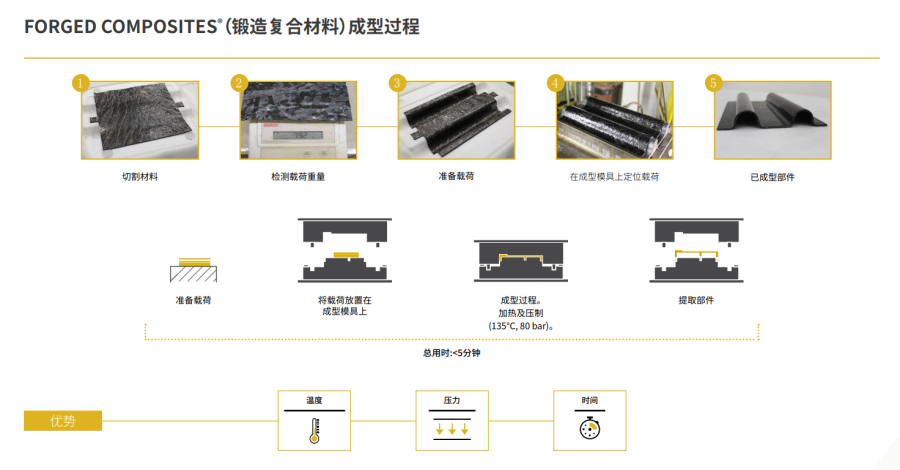 Forged Composite技术由全球最大的高尔夫球具制造商卡拉威联合兰博基尼位于美国西雅图的高级复合材料结构实验室联合开发的,兰博基尼官网的链接:Forged Composites® | Lamborghini.com, 网页上有个PDF文件,里面详细介绍了加工工艺(把CMF工艺做成重点宣传的技术,咱们国内的CMF行业发展还是有很大空间的)。