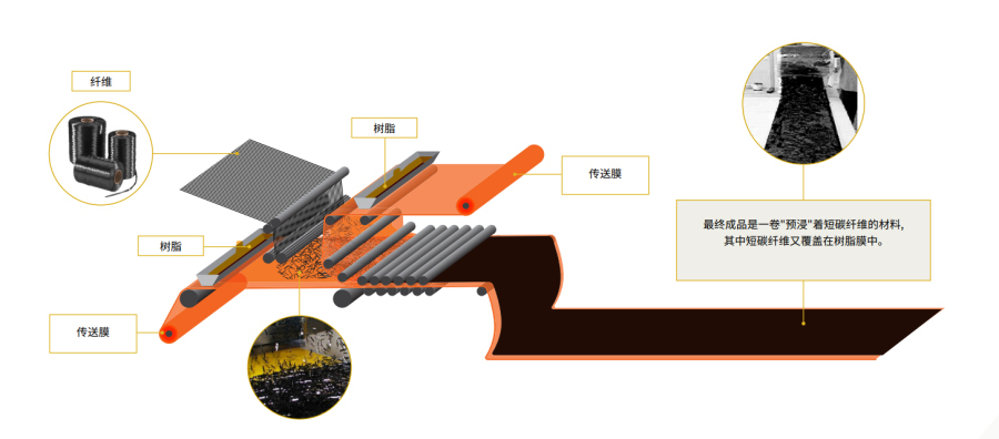 3. 传输膜:上下两层膜片,把树脂和短切碳纤像夹三明治一样夹住。