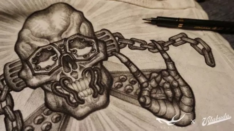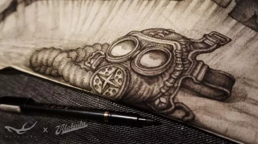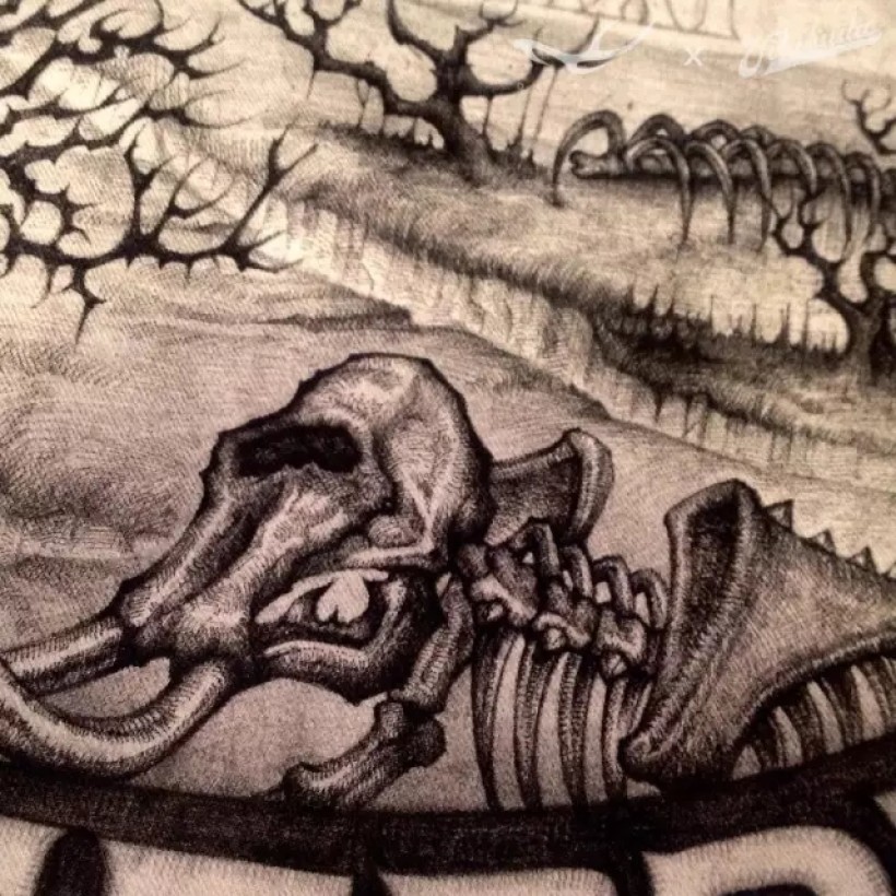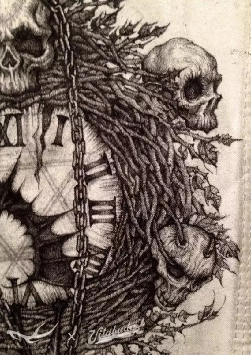 工装绘制临近尾声的阶段碰上了北京的大雾霾,袖子上还有空间需要填补。所以我应景的完成了这幅图。雾霾的成因肯定跟“金属”有关。同时“me-tallica”也是我非常喜欢的乐队的名称。